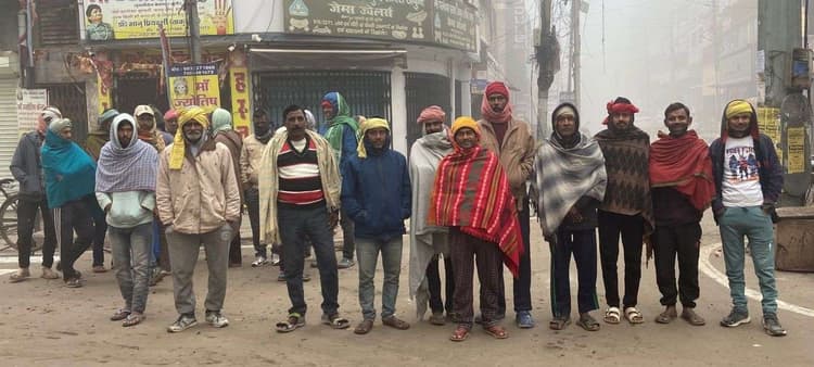 मुंगेर. शहर के जुबली बेल चौक बेकापुर मजदूरों की मंडी रही है, जहां गर्मी हो या सर्दी, धूप हो या बारिश यहां पर हर सुबह काम की तलाश में दिहाड़ी मजदूर और राज मिस्त्री का जमावड़ा लगता है. लेकिन भीषण सर्दी के बीच रोजी-रोटी की तलाश में सुबह-सवेरे मंडी में आने वाले दिहाड़ी मजदूरों के लिए हर दिन संघर्ष में बदल गया है. ठंड के कारण उन्हें काम नहीं मिल पा रहा है. हालात यह है कि इस ठंड ने उनसे रोजी-रोटी दोनों छीन लिया है और घरों में चूल्हा जलाना तक मुश्किल हो गया है.उधारी व भुखमरी में कट रही जिंदगी