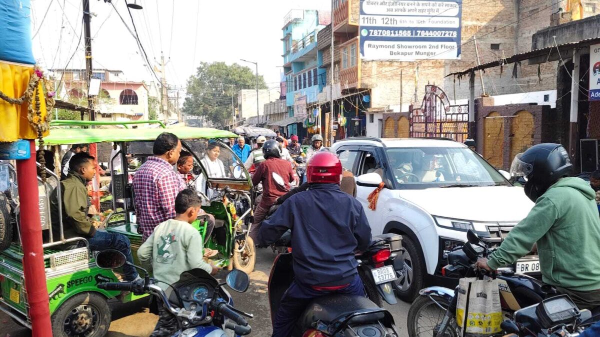 जमालपुर. जमालपुर शहर में नगर परिषद क्षेत्र का न केवल पश्चिमी इलाके में प्रतिदिन जाम की स्थिति से लोगों को जूझना पड़ता है, बल्कि ईस्ट कॉलोनी थाना क्षेत्र अंतर्गत डीडी तुलसी रोड पर मंगरौड़ा चौक के समीप भी प्रतिदिन जाम से लोग परेशान हैं. जाम की स्थिति सुबह में जी का जंजाल हो जाता है. बता दें कि मंगरौड़ा चौक पर सब्जी बेचने वालों की भीड़ लगती है. यह सब्जी विक्रेता ठेला लेकर सब्जी बेचने पहुंचते हैं. ठेला को इधर-उधर लगाकर ग्राहकों को सब्जी देने लगते हैं. ऐसी स्थिति में सड़क की चौड़ाई अत्यंत ही काम हो जाती है और जब कोई चारपहिया वाहन वहां से गुजरता है, तब दोनों तरफ जाम लग जाता है. ऐसी स्थिति सुबह को ज्यादा देखी जाती है. उस समय विभिन्न विद्यालयों में पढ़ने वाले बच्चे ई रिक्शा टेंपो से अपने विद्यालय की ओर जाते हैं तो उसी समय बड़ी संख्या में रेल कर्मी रेल इंजन कारखाना ड्यूटी करने निकलते हैं तथा जाम में फंसकर बुरी तरह परेशान हो जाते हैं. सबसे बड़ी विडंबना यह है कि ईस्ट कॉलोनी थाना के जवान भी सब्जी लेने यही मंगरौड़ा चौक पहुंचते हैं और खुद जाम का शिकार हो जाते हैं, परंतु जाम छुड़ाने के लिए पुलिस के स्तर से कोई कार्रवाई नहीं की जाती है. यह कोई एक दिन का दृश्य नहीं होता है, बल्कि प्रतिदिन इसी प्रकार की स्थिति उत्पन्न होती है.