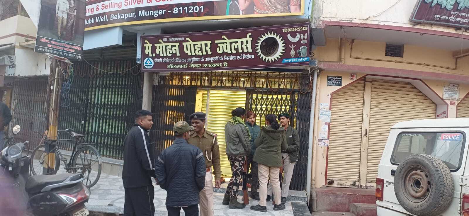मुंगेर शहर के बेकापुर जुबलीवेल चौक स्थित एक ज्वेलरी दुकान पर गुरुवार को दंडाधिकारी के नेतृत्व में कासिम बाजार और कोतवाली थाना पुलिस ने संयुक्त रूप से छापेमारी की. घंटों चली छापेमारी के बाद पुलिस ने स्वर्ण विक्रेता एवं उसके पुत्र को हिरासत में लेकर अपने साथ थाना लेकर चली गयी. हालांकि अंदर में छापेमारी में क्या जब्त किया गया इसको लेकर कोई भी पुलिस पदाधिकारी कुछ भी बताने से इंकार कर रही है. बताया जाता है कि 25 नवंबर की रात कासिम बाजार थाना क्षेत्र के बेलन बाजार निवासी उपेंद्र शर्मा के घर में चोरी की घटना को अंजाम दिया था. चोरों ने अन्य समानों के साथ लाखों रूपये के जेवरात की चोरी कर ली थी. इस मामले में पीड़ित गृहस्वामी के बयान पर कासिम बाजार थाना में प्राथमिकी दर्ज की गयी .इस बीच कासिम बाजार थाना पुलिस ने एक चोर को गिरफ्तार किया. जिसने पूछताछ में पुलिस के समक्ष चोरी की घटना में अपनी संलिप्तता स्वीकार करते हुए उसने जिस दुकान में चोरी का जेबरात बेचा था उसकी जानकारी दी. जिसके बाद दंडाधिकारी के नेतृत्व में कोतवाली थाना पुलिस के सहयोग लेकर कासिम बाजार थाना पुलिस ने बेकापुर स्थित उक्त आभूषण दुकान पर छापेमारी की. छापेमारी शाम 7 बजे तक जारी था. इस दौरान दुकान के सीसीटीवी फुटेज को भी पुलिस खंगाल गया. ताकि यह पता चल सके कि गिरफ्तार चोर चोरी का सामान बेचने दुकान पहुंचा था या नहीं. थानाध्यक्ष रूबीकांत कच्छप ने बताया कि गिरफ्तार चोर की निशानदेही पर ज्वेलर्स दुकान में छापेमारी की गई है. ज्वेलर्स मोहन पोद्दार और उसके पुत्र विशनु कुमार को हिरासत में लेकर पूछताछ किया जा रहा है.