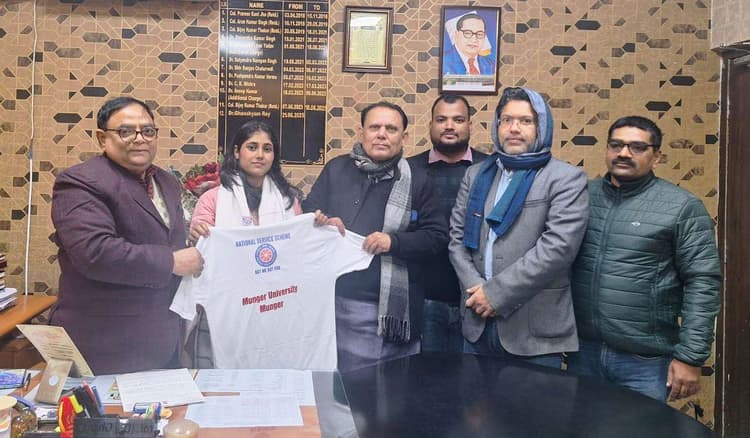 मुंगेर युवा कार्यक्रम एवं खेल मंत्रालय (भारत सरकार) और क्षेत्रीय निदेशालय पटना के अनुसार गणतंत्र दिवस परेड शिविर 2026 के लिए मुंगेर विश्वविद्यालय से प्रेरणा कुमारी एवं अभिजीत राज का चयन किया गया है. जो गणतंत्र दिवस परेड शिविर 2026 में बिहार का प्रतिनिधित्व करेंगे. चयनित प्रतिभागी ने गुरूवार को कुलसचिव प्रो घनश्याम राय से शिष्टाचार मुलाकात की. जहां उन्होंने चयनित स्वयंसेवक को एनएसएस टी-शर्ट, कैप, बैच, स्मृति चिन्ह एवं शाॉल प्रदान कर सम्मानित किया. मौके पर आइआरपीएम के विभागाध्यक्ष प्रो अजफर शमसी, एनएसएस के कार्यक्रम समन्वयक मुनींद्र कुमार सिंह सहित अन्य मौजुद थे. कार्यक्रम समन्वयक ने बताया कि गणतंत्र दिवस के अवसर पर नई दिल्ली के कर्तव्य पथ पर आयोजित गणतंत्र दिवस परेड 2026 को साक्षी के रूप में देखने के लिए पूरे देश से 100 एनएसएस स्वयंसेवकों एवं उनके माता-पिता में से किसी एक को विशेष अतिथि के रूप में आमंत्रित किया गया है. उन्होेंने बताया कि एमयू की प्रेरणा कुमारी डीएसएम कॉलेज झाझा की छात्रा एवं राष्ट्रीय सेवा योजना की स्वयंसेविका है. प्रेरणा के साथ उनके पिता उमेश कुमार राव शिविर में अतिथि के रूप में शामिल होंगे. जबकि गणतंत्र दिवस परेड शिविर 2026 में अभिजीत राज राष्ट्रीय स्तर पर मुंगेर विश्वविद्यालय और बिहार का प्रतिनिधित्व कर रहे हैं. यह परेड शिविर का आयोजन 1 से 31 जनवरी 2026 तक नई दिल्ली में आयोजित किया जा रहा है. प्रेरणा कुमारी 23 जनवरी को इस शिविर में शामिल होगी. इस कैंप में शैक्षणिक गतिविधियां, सांस्कृतिक कार्यक्रम, 26 जनवरी को कर्तव्य पथ पर परेड, ऐतिहासिक स्थलों का भ्रमण, भारत के राष्ट्रपति और प्रधानमंत्री से मुलाकात इत्यादि कार्यक्रम होंगे.