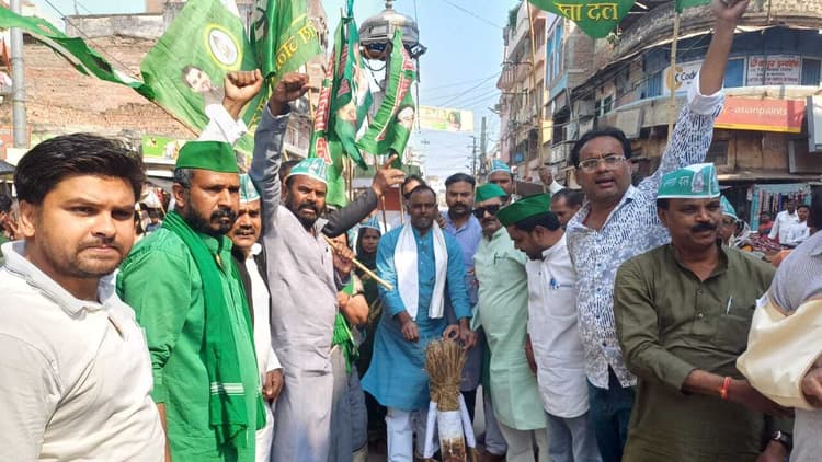 मुंगेर. राष्ट्रीय गान के अपमान का आरोप लगाते हुए राजद ने शनिवार को राजीव गांधी चौक पर मुख्यमंत्री का पुतला दहन किया. इससे पूर्व राजद जिलाध्यक्ष त्रिलोकी नारायण शर्मा के नेतृत्व में पुतला जुलूस निकाल कर राजद नेताओं ने जमकर नारेबाजी की और मुख्यमंत्री से इस्तीफा देने की मांग की. राजद नेताओं ने कहा कि बिहार के मुख्यमंत्री द्वारा बार-बार ऐसी हरकत किया जा रहा है, जिससे बिहार व बिहारी को शर्मसार होना पड़ता है. उनको तत्काल अपने पद से इस्तीफा देना चाहिए. मंच पर पैर छूना उनकी आदत बन गयी है. इधर, पूरे प्रदेश में हत्या, लूट, दुष्कर्म, भ्रष्टाचार के साथ-साथ अफसरशाही बढ़ गया है. इसीलिए मुख्यमंत्री को तत्काल अपने पद से त्याग पत्र दे देना चाहिए. पुतला दहन में प्रमोद यादव, पंकज यादव, शिशिर कुमार लालू, मनीष कुमार, दिनेश कुमार, संतोष यादव, हसीबुर रहमान, आदर्श राजा सहित अन्य मौजूद थे.