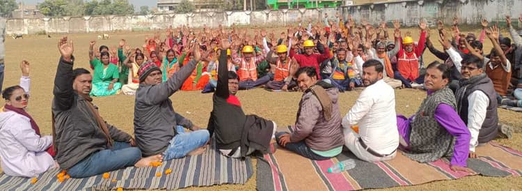आरएस कॉलेज मैदान में बैठक कर स्वच्छताकर्मियों ने कीअपनी लंबित मानदेय भुगतान की मांग, प्रतिनिधि, तारापुर. लोहिया स्वच्छता अभियान के तहत ग्राम पंचायतों में बहाल स्वच्छता पर्यवेक्षक व स्वच्छताकर्मियों ने अपनी लंबित मानदेय भुगतान व मानदेय बढ़ोतरी को लेकर रविवार को बैठक की. आरएस कॉलेज, तारापुर के मैदान में आयोजित बैठक की अध्यक्षता प्रदेश अध्यक्ष श्रवण कुमार ने की. इसके उपरांत जमुई सांसद तक अपनी मांगों को पहुंचाने के लिए सांसद प्रतिनिधि चंद्रशेखर चौधरी को ज्ञापन सौंपा. बताया गया कि लोहिया स्वच्छ बिहार अभियान के तहत ग्रामीण क्षेत्रों में पंचायत स्तर पर स्वच्छता पर्यवेक्षक कार्यरत हैं. सरकार के स्वच्छ ग्राम के संकल्प में इनकी महत्वपूर्ण भूमिका है, लेकिन आज भी स्वच्छताकर्मी व पर्यवेक्षक को जो मानदेय दिया जा रहा हैं वह ऊंट के मुंह में जीरा के फोरन के बराबर है. इसलिए संघ सरकार से मांग करती है कि स्वच्छता पर्यवेक्षक व स्वच्छता कर्मियों का लंबित मानदेय शीघ्र भुगतान किया जाय और मानदेय में बढ़ोतरी की जाये. सरकार स्वच्छता पर्यवेक्षक का मानदेय बीस हजार रुपये व स्वच्छताकर्मियों का मानदेय दस हजार रुपये करें. तभी उनके परिवार का भरण-पोषण संभव हो पायेगा. मौके पर स्वच्छता पर्यवेक्षक गंगा सागर, अल्पु कुमारी, रौशन कुमार, वीरेंद्र कुमार मंडल, अरुण कुमार, चंदन कुमार, सत्यजीत कुमार, इंद्रजीत कुमार, राजू पासवान, रूपेश पासवान सहित स्वच्छताकर्मी मौजूद थे.