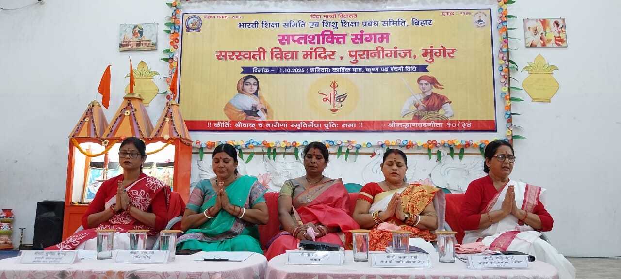 मुंगेर. शिक्षा और ज्ञान के माध्यम से ही हम अपने लक्ष्यों को प्राप्त कर सकते हैं और समाज में सकारात्मक परिवर्तन ला सकते हैं. महिलाएं अपने अधिकारों के प्रति जागरूक हों और आत्मनिर्भर बनने के लिए कार्य करें. वे अपने सपनों को पूरा करने के लिए कभी हार न मानें. उक्त बातें सरस्वती विद्या मंदिर में भारती शिक्षा समिति एवं शिशु शिक्षा प्रबंध समिति, बिहार द्वारा आयोजित सप्तशक्ति संगम कार्यशाला में मुख्य अतिथि ग्रीन लेडी के नाम से चर्चित मुंगेर की जया देवी ने कही.उन्होंने कहा कि महिलाओं को पर्यावरण संरक्षण के लिए भी आगे बढ़कर कार्य करना चाहिए. कार्यक्रम की अध्यक्षता कर रही रीता दयाल ने कहा कि मां अपने बच्चों को नैतिकता, अनुशासन और सामाजिक मूल्यों की शिक्षा देती है. जिससे बच्चों में आगे चलकर आत्मविश्वास, प्रेम, सहानुभूति और सहिष्णुता के गुण विकसित होते हैं. ऐसे ही बच्चे राष्ट्र निर्माण में महत्वपूर्ण भूमिका निभाते हैं और समाज में सकारात्मक परिवर्तन लाने के लिए महत्वपूर्ण कार्य करते हैं. बालिका खंड की प्रभारी प्रधानाचार्या राखी कुमारी ने कहा कि सप्तशक्ति संगम कार्यशाला का उद्देश्य नारी संगठन को आगे बढ़ाना और मजबूत करना है. महिलाएं अपनी मेधा शक्ति से राष्ट्र का नेतृत्व करने में सक्षम है. परिवार में समरसता हो, इसके लिए सामूहिक भोजन करें. हमें पंच तत्वों को बचाने के लिए भी प्रयास करना चाहिए. आचार्या पाणिनी मिश्रा ने कहा कि भारत में स्त्री को देवी का रूप माना जाता है. महिलाएं बच्चों को भारतीय संस्कृति के अनुरूप संस्कारवान बनाएं. इस दौरान आदर्श माताओं से जुड़ी प्रश्नोतरी कार्यक्रम का भी आयोजन हुआ, जिसमें माताओं ने उत्साहपूर्वक भाग लिया. मौके पर प्राथमिक खंड की प्रभारी प्रधानाचार्या सुजीता कुमारी, आचार्या अल्पना शर्मा, सुरीति राज, रजनी सिन्हा, शीला मेहता आदि मौजूद थी.