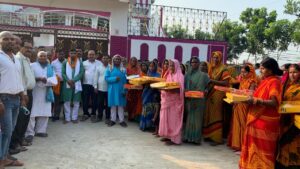 व्रतियों के बीच पूजन सामग्री, साड़ी व धोती का किया वितरण