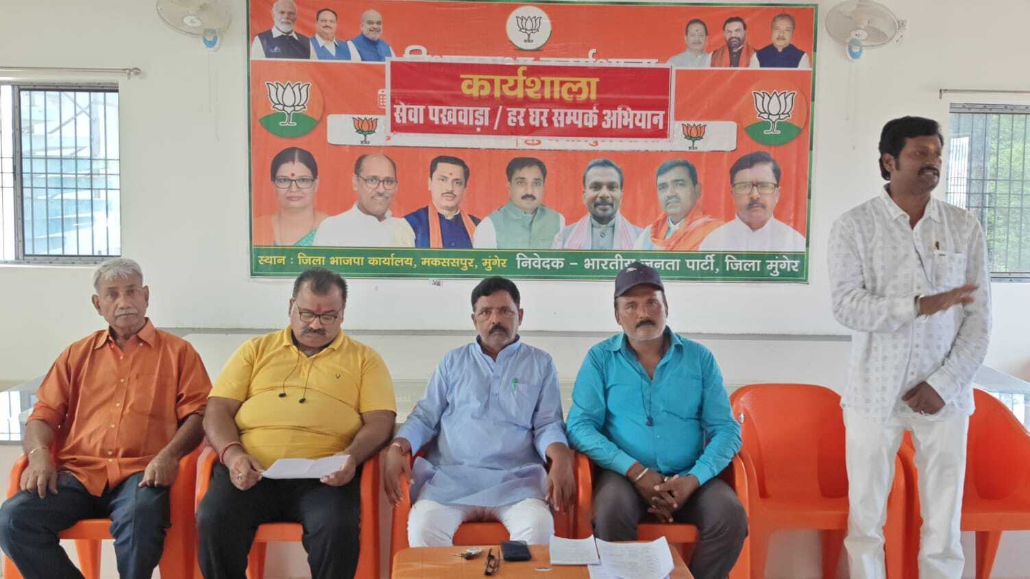 मुंगेर. भाजपा की ओर से प्रधानमंत्री नरेंद्र मोदी के जन्म दिवस पर 17 सितंबर से महात्मा गांधी तथा लाल बहादुर शास्त्री के जन्म दिवस दो अक्टूबर तक सेवा पखवाड़ा मनाया जायेगा. इस दौरान स्वास्थ्य शिविर, रक्तदान शिविर, स्वच्छता अभियान तथा अनेकों प्रकार के कार्यक्रम का आयोजन किया जायेगा. जिसकी सफलता को लेकर शहर के मकससपुर स्थित भाजपा कार्यालय में शुक्रवार को जिलाध्यक्ष अरूण कुमार पोद्दार की अध्यक्षता में कार्यशाला का आयोजन का आयोजन किया गया. जिसमें कार्यकर्ताओं को सेवा पखवाड़ा के विषय में जानकारी दी गयी. हर घर संपर्क अभियान के संयोजक प्राण रंजन विकास ने कहा पहले चरण में हर घर संपर्क अभियान को लेकर 18 सितंबर से 25 सितंबर तक हमारे कार्यकर्ता घर-घर संपर्क कर अपने डबल इंजन की सरकार द्वारा की गई विकास कार्य तथा जन उपयोगी योजनाओं के बारे में जानकारी देंगे. साथ ही एनडीए उम्मीदवार के के पक्ष में वोट डालने की अपील करेंगे. जिलाध्यक्ष ने कार्यकर्ताओं का आह्वान किया कि वे अपने-अपने बूथ पर एनडीए उम्मीदवार के लिए अभी से ही वोट मांगना शुरू कर दें. मुख्य अतिथि के रूप में भाजपा के बांका जिला प्रभारी कुमार प्रणय एवं कार्यक्रम के संयोजक सह जिला महामंत्री अमरेश चंद्र सिंह ने कहा कि 225 सीटों के लक्ष्य को पाने के लिए हम कार्यकर्ताओं को अभी से ही घर-घर संपर्क कर एनडीए उम्मीदवार के पक्ष में वोट मांगना है. प्रदेश कार्यसमिति सदस्य संजीव मंडल ने कहा कि हम कार्यकर्ता घर-घर जायेंगे और एनडीए शासनकाल में किये गये विकास और जनकल्याणकारी योजनाओं को बारे में जनता को बतायेंगे. हम विकास के नाम पर उनसे एनडीए प्रत्याशी के पक्ष में वोट मांगने का काम करेंगें. तभी लक्ष्य पूरा होगा. मौके पर ओम प्रकाश ठाकुर, संतोष कुमार पोद्दार, विवेकानंद त्यागी, जितेंद्र कुमार दुलार सहित अन्य मौजूद थे.