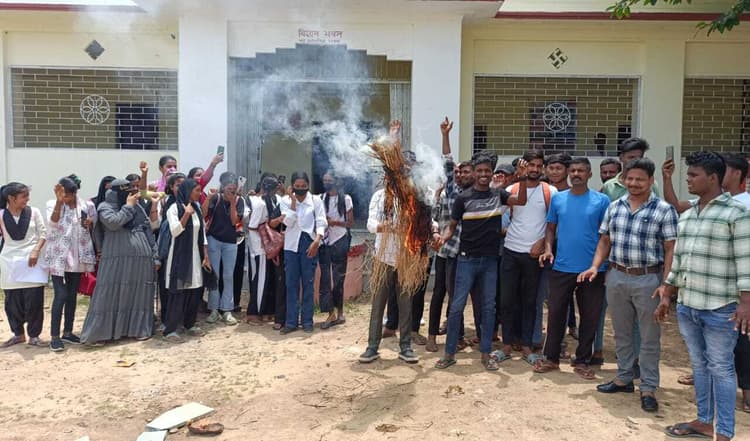 हवेली खड़गपुर. स्नातक सेमेस्टर-वन सत्र 2024-28 के परीक्षाफल प्रकाशन में मुंगेर विश्वविद्यालय के परीक्षा विभाग द्वारा बरती गई लापरवाही से छात्र-छात्राओं को मानसिक प्रताड़ना के दौर से गुजरना पड़ रहा है. विश्वविद्यालय द्वारा कई कई परीक्षार्थियों को परीक्षा में उपस्थित रहने के बाद अनुपस्थित कर दिया गया है. इसके विरोध में बुधवार को छात्र राजद के कार्यकर्ताओं ने प्रदर्शन किया व कुलपति का पूतला फूंका. प्रदर्शन का नेतृत्व काॅलेज अध्यक्ष राजू कुमार ने किया. छात्र राजद के प्रदेश महासचिव ईशु यादव ने कहा कि जारी परीक्षाफल में कई परीक्षार्थी को इंटरनल, एक्सटर्नल व प्रैक्टिकल परीक्षा में अनुपस्थित कर दिया गया है. स्नातक सत्र 2023-27 के बैकलॉग छात्र-छात्राओं को बैक पेपर की परीक्षा देने पर बैक पेपर में पास कर दिया गया है. अन्य पेपर में जिसमें पहले से वे पास थे. उस परीक्षा में उन्हें अनुपस्थित एवं बैक कर दिया गया है. जिससे छात्र-छात्राएं मानसिक रूप से परेशान हैं. उन्होंने कहा कि पूर्व में भी विश्वविद्यालय की गलती का परिणाम एचएस काॅलेज के परीक्षार्थियों को भुगतना पड़ा था. यही हाल आरएस काॅलेज तारापुर और अन्य महाविद्यालय की छात्र-छात्राओं के साथ हुआ है. विश्वविद्यालय अध्यक्ष श्रवण कुमार ने कहा कि यदि शीघ्र त्रुटिपूर्ण परीक्षाफल में सुधार नहीं किया गया तो आंदोलन का रूख अख्तियार किया जायेगा. मौके पर कॉलेज उपाध्यक्ष सौरभ सिंह, गोलू कुमार, सिंटू कुमार, रंजन पासवान, जितेंद्र कुमार यादव, अमन, अंकित, कन्हैया, शिवम, नेहा कुमारी, प्रियंका कुमारी, पार्वती कुमारी सहित अन्य मौजूद थे.