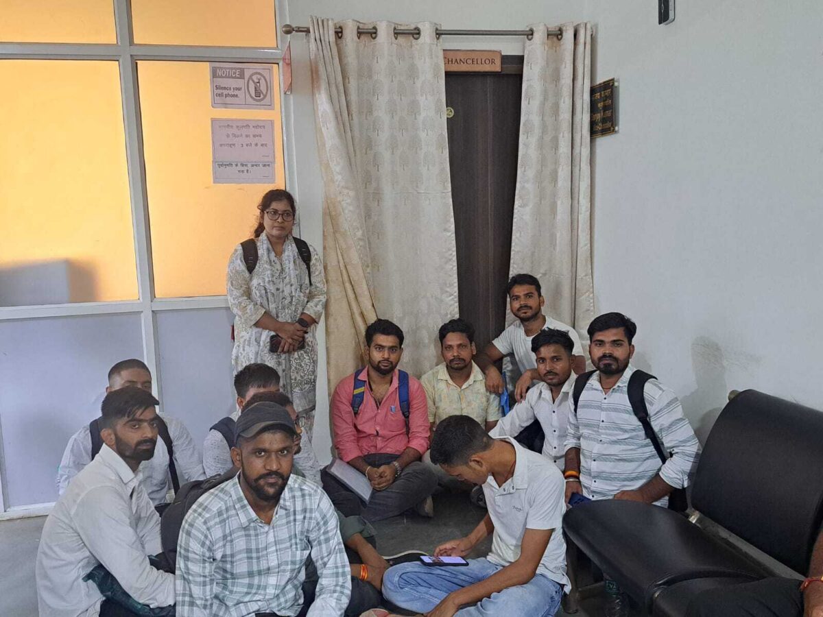 मूल प्रमाण पत्र की मांग को लेकर कुलपति कार्यालय के समक्ष धरने पर बैठे विद्यार्थी