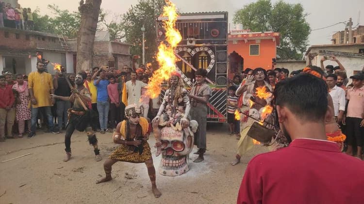 तारापुर. आगामी 15 अप्रैल को माधोडीह गांव में महारूद्र यज्ञ का आयोजन किया जायेगा. इसे लेकर मंगलवार की संध्या यज्ञ समिति द्वारा गाजे-बाजे के साथ विशाल झांकी बाबा बिर्नोधानाथ महादेव मंदिर परिसर से निकाली गयी. झांकी में उज्जैन से आये अघोरियों व साधुओं ने कैलाश धुंआ धुंआ है… जैसे भक्ति गीतों पर गले में नर मुंड धारण कर खूब नृत्य किया और अपनी जटाओं से अग्नि को प्रज्ज्वलित कर भक्ति का अद्भुत नजारा पेश किया. नृत्य को देखने के लिए मंदिर परिसर में श्रद्धालुओं की भारी भीड़ उमड़ पड़ी. यज्ञ समिति के पुष्पम व प्रियम कुमार ने बताया कि विश्व कल्याण को लेकर 15 अप्रैल से तारापुर के माधोडीह गांव में 11 दिवसीय श्री श्री 108 महारूद्र यज्ञ का आयोजन किया जा रहा है. यज्ञ के एक दिन पूर्व कलश शोभा यात्रा निकाली जायेगी और शोभायात्रा में शामिल श्रद्धालुओं पर हेलीकॉप्टर से पुष्प वर्षा किया जायेगा. यज्ञ में सैकड़ों देवी-देवता की प्रतिमा बनाई जा रही है. यज्ञ में बनारस व अन्य प्रांतों के विद्वान पंडितों द्वारा वैदिक मंत्रोच्चारण के बीच पवित्र हवन कुंड में विश्व कल्याण की कामना करते हुए आहूति दी जायेगी.डिस्क्लेमर: यह प्रभात खबर समाचार पत्र की ऑटोमेटेड न्यूज फीड है. इसे प्रभात खबर डॉट कॉम की टीम ने संपादित नहीं किया है