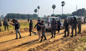 कब्जा दिलाने अधिकारी संग बॉडी प्रोटेक्टर के साथ उतरे दंडाधारी व शस्त्रधारी पुलिस जवान