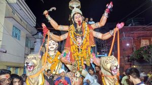 शोभायात्रा में बड़ी संख्या में लोग शामिल हुये और मां काली को नम आंखों से विदाई दी