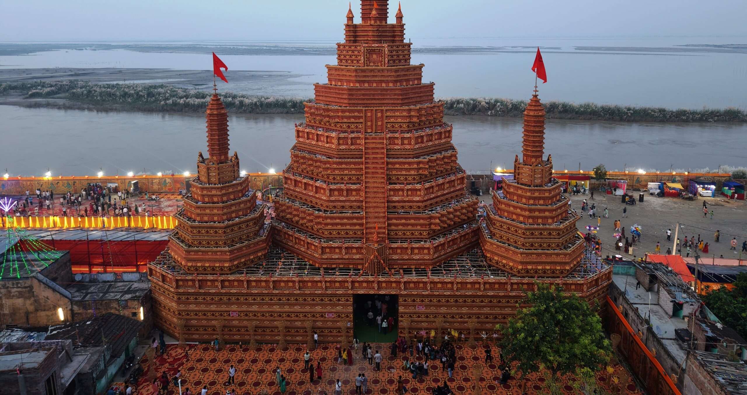 मुंगेर. बरियारपुर प्रखंड के गंगा तट पर स्थित बड़ी दुर्गा महारानी मंदिर कल्याणपुर में भव्य पंडाल का निर्माण कराया गया. इस बार थाईलैंड की राजधानी बैंकॉक में अवस्थित अरूण मंदिर की तर्ज पर यहां भव्य दुर्गा पंडाल का बनाया गया है. जबकि यहां पर कैलाश पर्वत तैयार किया गया है, जिस पर विशालकाय भगवान शिव की आकृति लगाया गया है.