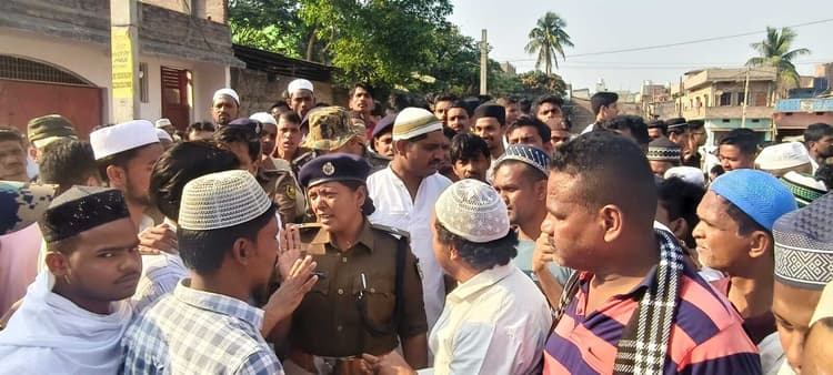 समाज के लोगों ने कब्रिस्तान की खाली जमीन पर दिये गये दीवार को तोड़ा