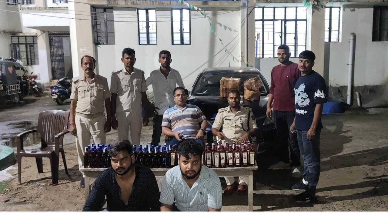 मुंगेर. सफियासराय थाना क्षेत्र के एनएच-80 फरदा गांव के समीप सोमवार को उत्पाद थाना पुलिस की टीम ने एक लग्जरी कार से 150 बोतल विदेशी शराब के साथ दो शराब तस्कर को गिरफ्तार किया. दोनों झारखंड के बोकारो स्टील सिटी का रहने वाला है. शराब लेकर लखीसराय जा रहा था. पुलिस ने कार भी जब्त कर लिया है. बताया जाता है कि उत्पाद थाना पुलिस को सूचना मिली कि झारखंड से सफियासराय होते हुए शराब की तस्करी कर लखीसराय ले जाया जा रहा है. इंस्पेक्टर धर्मवीर कुमार, एसआई सुजीत कुमार के नेतृत्व में उत्पाद विभाग की टीम ने फरदा गांव के समीप वाहन चेकिंग अभियान शुरू किया. इसी दौरान एक नीले रंग की लग्जरी कार को रोकने का प्रयास किया, तो वह तेज रफ्तार से भागने लगा. आगे खड़ी उत्पाद थाना की गाड़ी में टक्कर मार दी. उत्पाद पुलिस ने उक्त वाहन की डिक्की की तालाशी ली तो उससे 150 बोतल में कुल 56.250 लीटर विदेशी शराब बरामद किया गया. आईबी कंपनी की 375 एमएल का 60 बोतल, आरएस कंपनी की 375 एमएल का 54 और आरसी कंपनी की 375 एमएल का 36 बोतल मिली. पुलिस ने दोनों तस्कर बोकारो स्टील सिटी निवासी शुभम कुमूार एवं अंशु कुमार को गिरफ्तार कर लिया. उत्पाद थाना के थानाध्यक्ष आशुतोष कुमार ने बताया कि इस बरामदगी को लेकर उत्पाद थाना में संशोधित उत्पाद अधिनियम के तहत मामला दर्ज किया गया है. दोनों गिरफ्तार को न्यायिक हिरासत में भेज दिया गया.