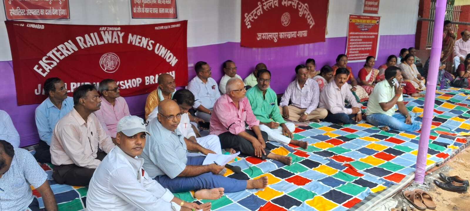 ईस्टर्न रेलवे मेंस यूनियन कारखाना शाखा और ओपन लाइन शाखा ने दिया संयुक्त धरना
