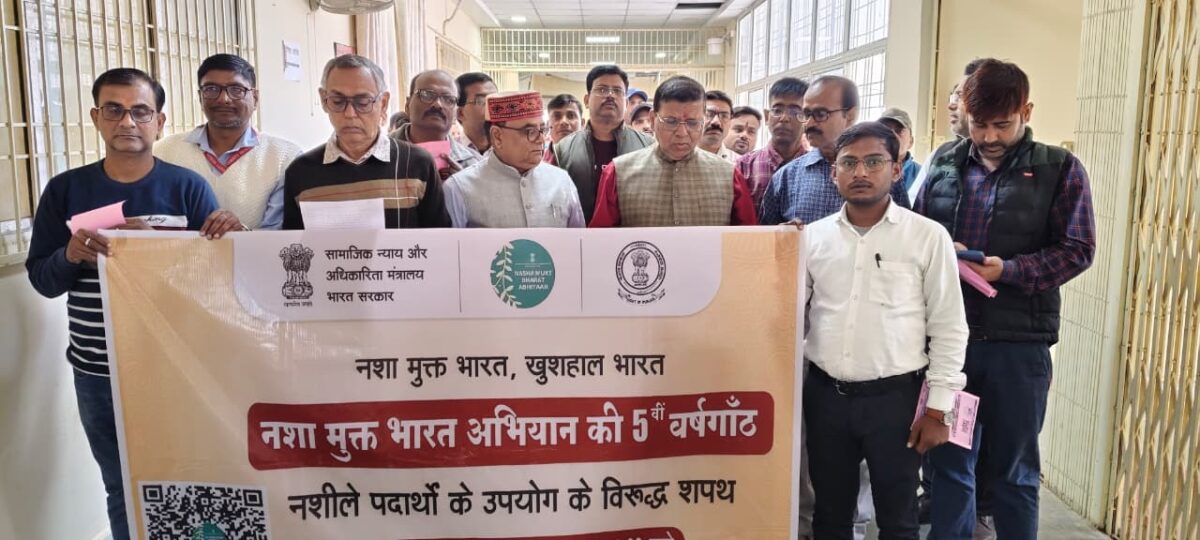 कार्यक्रम की जानकारी देते हुये एनएसएस समन्वयक मुनींद्र कुमार सिंह ने बताया कि नेशनल एक्शन प्लान फॉर ड्रग डिमांड रिडक्शन योजनान्तर्गत नशा मुक्त भारत अभियान के 5 वें वर्षगांठ पर इस कार्यक्रम का आयोजन किया जा रहा है. इस कार्यक्रम उद्देश्य एनएमबीए अभियान की उपलब्धियों की ओर ध्यान आकृष्ट करना, सामुदायिक भागीदारी बढ़ाना तथा नशा मुक्त समाज के निर्माण की दिशा में सामूहिक प्रयासों को सुदृढ़ करना है. कुलपति ने कहा कि युवा किसी भी राष्ट्र की शक्ति होते हैं. जिनका समाज एवं देश के विकास में महत्वपूर्ण योगदान होता है, इसलिए यह अत्यंत महत्वपूर्ण हो जाता है कि अधिक से अधिक युवा नशा मुक्त भारत अभियान से जुड़ें. देश के सामने मौजूद इस चुनौती को स्वीकार करते हुए आज हम सब नशा मुक्त भारत अभियान के अंतर्गत एकजुट होकर संकल्प लेते हैं कि न केवल हमारा समाज, परिवार, मित्र बल्कि हम स्वयं भी नशामुक्त रहेंगे. क्योंकि बदलाव की शुरुआत खुद से होती है. डीएसडब्लूय ने कहा कि छात्र-छात्रों को बेहतर कैरियर के लिए नशा से दूर रहना चाहिए. कुलसचिव ने कहा कि नशा मुक्त भारत अभियान मादक पदार्थों के सेवन से गंभीर सामाजिक, मनोवैज्ञानिक और शारीरिक समस्याएँ उत्पन्न होती हैं. इससे निपटने के लिए हमें एकजुट होन होगा. मौके पर कार्यालय कर्मी सुमंत कुमार, सौरव शांडिल्य आदि मौजूद थे.कॉलेजों में भी शिक्षक व विद्यार्थियों ने लिया शपथ