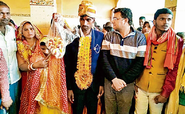 लड़का और लड़की पक्ष ने विवाह मंदिर में करने का फैसला लिया. लोगों को विवाह की सूचना मोबाइल पर दी गयी. विवाह में आने वालों का चाय से स्वागत किया गया. इस विवाह में शहनाई भी नहीं बजायी गयी. इस शादी समारोह में बीडीओ सिद्धार्थ कुमार भी शामिल हुए.