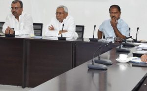 दिल्ली से सोमवार को पटना लौटे मुख्यमंत्री नीतीश कुमार ने आला अधिकारियों के संग उच्चस्तरीय बैठक की. उनकी पहल पर हुई बैठक में स्वास्थ्य मंत्री मंगल पांडेय और मुख्य सचिव दीपक कुमार भी शामिल हुए. मुख्यमंत्री ने अधिकारियों से सभी जिलों की रिपोर्ट ली. करीब एक घंटे से अधिक समय तक चली बैठक के बाद मुख्य सचिव दीपक कुमार, स्वास्थ्य सचिव आरके महाजन, गृह विभाग के अपर मुख्य सचिव आमीर सुबहानी, आपदा प्रबंधन विभाग के प्रधान सचिव प्रत्यय अमृत और स्वास्थ्य विभग के प्रधान सचिव संजय कुमार ने सूचना भवन में प्रेस कांफ्रेंस कर सरकार द्वारा उठाये कदमों की जानकारी दी.