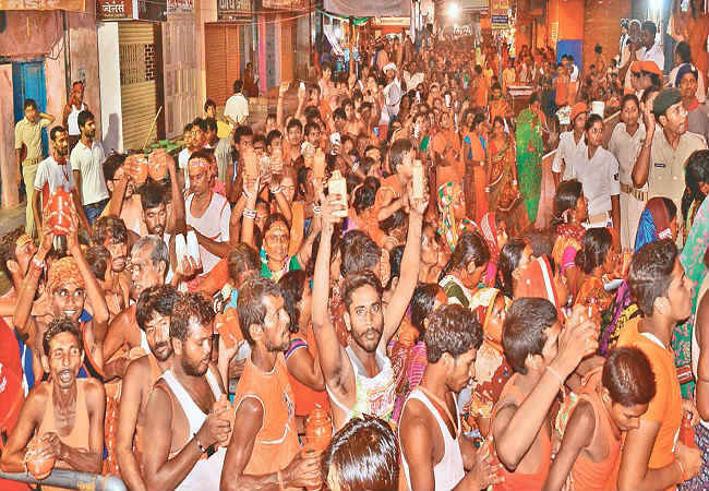 मुजफ्फरपुर :बिहारके मुजफ्फरपुर में सावन की तीसरी सोमवारी को बाबा गरीबनाथ के मंदिर में जलाभिषेक के लिए उमड़े हजारों कांवरियों की भीड़ में रुक-रुक कर मची भगदड़ में कई लोगों के घायलहोने कीखबरहै. इस हादसे में कई महिलाएं और बच्चे भी शामिल हैं. बाद में स्थिति बेकाबू होता देख डीएम, एसएसपी व एसडीओसमेतकईअधिकारीमौके पर पहुंचगयेऔर खुद मोर्चा संभाला.