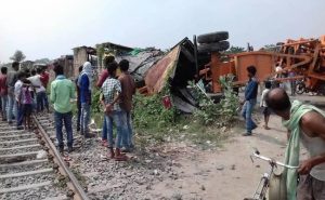 मुजफ्फरपुर में पैसेंजर ट्रेन से टकरायी जेसीबी