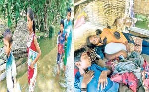 कुछ आगे बढ़ने पर सड़क किनारे एक पेड़ के नीचे खाट पर 67 वर्षीय विश्वनाथ सहनी सोये हुये हैं. उनकी पत्नी सुशीला देवी पैर दबा रही हैं. पूछे जाने पर सुशीला देवी बताती है कि घर में कमर से भी जादे पानी हई. घर में से समान लाबे ला कयबेर गेलखिन अलखिन ह से तीन दिन से सर्दी बुखार अउर हाथगोर में दरद हो गेल हइन. कल से गोटी (दवा ) खिअवइन छिअइन, लेकिन अभी ठीक न भेलइन ह. आगे बढ़ने पर अवधेश साह मिलते हैं. वह बताते हैं कि आगे करीब डेढ़ सौ घर पानी में घिरल हई. सब रघई के ही वार्ड 11 में परई छई.