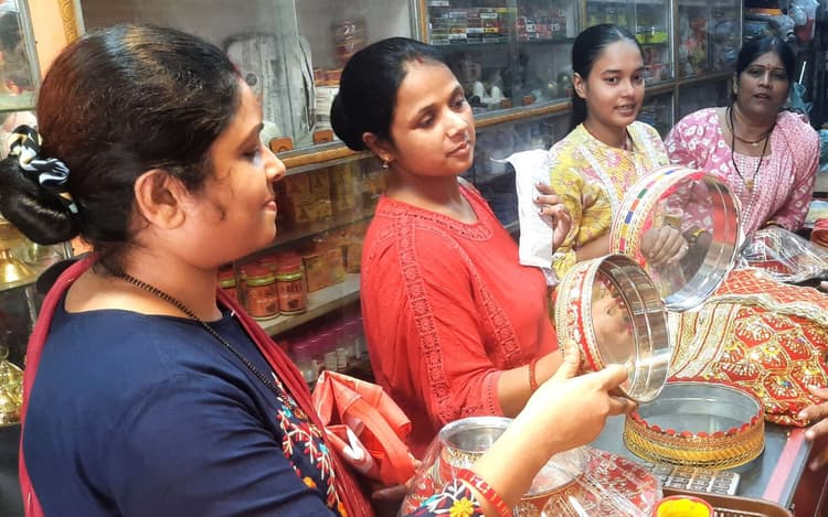 पर्व के लिए करवा चौथ लिखा थाली सेट की खूब बिक्री हुई. वेलवेट कपड़े से नक्काशी किया हुए थाली पर करवा चौथ लिखा था, जो महिलाओं को काफी पसंद आया. बाजार में 120 से 250 रुपए तक थाली सेट बिका. इसके अलावा करवा की बिक्री भी जमकर हुई. पर्व करने वाली महिलाओं ने थाली सेट के अलावा नारियल और चुनरी की भी खरीदारी की. दुकानों में करवा चौथ की पूरी सामग्री का सेट एक हजार से डेढ़ हजार तक बिका. कई महिलाओं ने अपनी पसंद के सामग्री की अलग-अलग खरीदारी की.