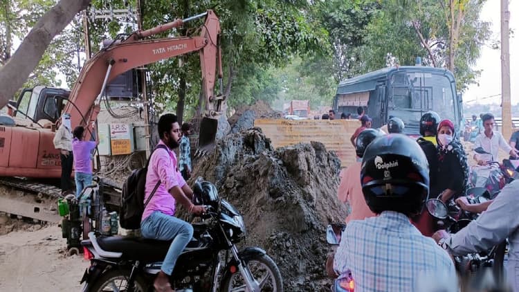 Bihar Traffic: मुजफ्फरपुर स्मार्ट सिटी में चल रहे सीवरेज एवं ड्रेनेज प्रोजेक्ट को लेकर सिकंदरपुर मरीन ड्राइव रोड को निर्माण एजेंसी ने बंद कर दिया है. मरीन ड्राइव रोड में मेनहोल निर्माण के लिए बीचों-बीच खुदाई की गयी है. इससे बुधवार की दिन से ही इस रोड का ट्रैफिक ब्लॉक हो गया है. इस कारण लोगों को काफी परेशानी हुई.