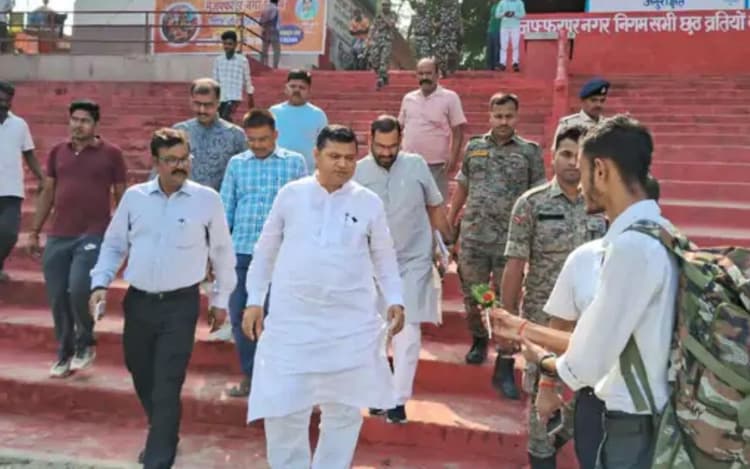 Chhath Puja 2024: केंद्रीय जल शक्ति मंत्री राज भूषण चौधरी निषाद ने मुजफ्फरपुर में छठ घाटों का निरीक्षण किया और व्रतियों को सभी आवश्यक सुविधाएं मुहैया कराने के लिए अधिकारियों के साथ मिलकर तैयारियों का जायजा लिया. इस दौरान मंत्री ने विशेष रूप से नगर निगम क्षेत्र में स्थित सीढ़ी घाट से चंदवारा घाट तक की स्थिति का निरीक्षण किया, जहां आवश्यक उपाय किए गए हैं.
