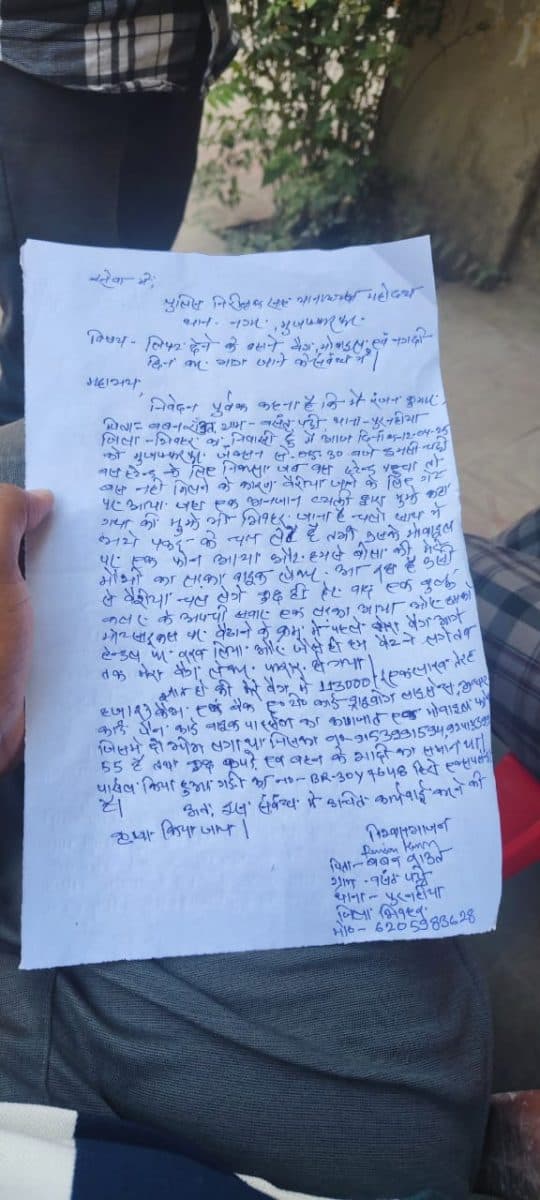 थाने में दर्ज शिकायत के अनुसार, पीड़ित मुंबई से वापस अपने घर शिवहर लौट रहा था. देर रात वह मुजफ्फरपुर पहुंचा. रात उसने स्टेशन पर ही बिताई. सुबह करीब 5.30 बजे वह इमलीचट्टी बस स्टैंड के लिए निकला. स्टैंड में पहुंचा तो बस छूट गई थी. इसके बाद वहां पीड़ित को एक व्यक्ति मिला, जिसने बताया कि वह भी शिवहर जा रहा है. उसकी भी बस छूट गई है. उसने पीड़ित को ऑटो लेकर साथ में ही चलने की बात कही. युवक मान गया. थोड़ी दूर आगे जाते ही आरोपी बोला कि मेरी मौसी का बेटा आ रहा है, वह हमदोनों को बाइक से वहां पहुंचा देगा. थोड़ी देर में एक ब्लू कलर की अपाचे बाइक पर लड़का आता है. आरोपी पीड़ित को अपना बैग देकर आराम से पीछे बैठने को कहता है. जैसे की बैग देकर पीड़ित बैठने की कोशिश करता है. आरोपी बैग लेकर फरार हो जाता है.