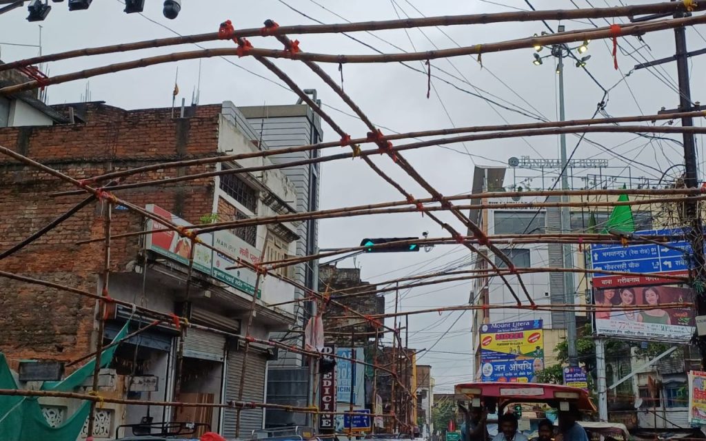 Durga Puja 2024: दुर्गा पूजा पंडाल निर्माण के बांस-बल्ला से ढका सीसीटीवी कैमरा व ट्रैफिक सिग्नल, दुर्गा पूजा में होगी मुश्किल