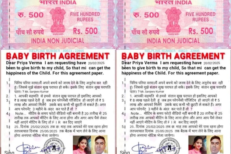अहियापुर के गरहां ओपी क्षेत्र के रहने वाले एक व्यक्ति के मोबाइल पर जो साइबर अपराधी एग्रीमेंट की जो फर्जी कॉपी भेजा है उस पर मुंबई हाइकोर्ट का मुहर लगा हुआ है. इसमें प्रिया वर्मा की एक छद्म महिला के नाम पर बनाया गए इस एग्रीमेंट में लिखा है कि मैं प्रिया वर्मा अपने बच्चे को जन्म देने का अनुरोध कर रही हूं, जिससे मुझे संतान सुख का प्राप्ति हो सके. इसलिए आपको आठ लाख रुपये की पहल देती हूं. जब हम प्रेगनेंसी पॉजिटिव हो जायेंगे, तो पांच लाख और आपको मिलेंगे. उसके बाद आप कभी भी छुट्टी ले सकते हैं. जिस समय आपसे मीटिंग होनी है उस समय का वीडियो नहीं बनाना है. 20 से 25 तारीख के अंदर में आपको मीटिंग करने के लिए आना होगा. अगर आप पैसा लेकर नहीं आयेंगे, तो आपके खिलाफ प्राथमिकी दर्ज की जाएगी. 25 फरवरी से अगले छह माह तक आपको मेरे साथ रहना होगा. अगर आप मीटिंग में भाग लेने नहीं आते हैं, तो आपके खिलाफ नोटिस भेजी जायेगी.