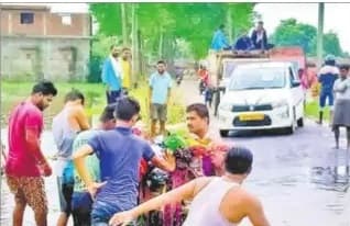 मुजफ्फरपुर : केरमा -सोनबरसा मार्ग में सोनबरसा शाह और सोनबरसा डीह गांव के बीच पुलिया के ऊपर तीन फुट से ज्यादा बाढ़ के पानी का तेज धारा चलने से पुलिया के दोनों तरफ लगभग 50 फुट में पक्की सड़क ध्वस्त हो गयी है. इन सड़कों पर जानलेवा बने गड्ढे से बेहाल पीड़ित व राहगीर कई अपनी जान गंवा चुके हैं. कई गंभीर रूप से जख्मी हैं.