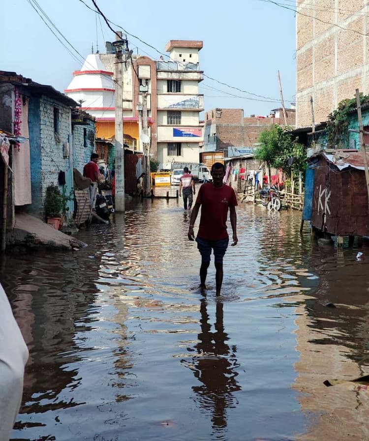 नेपाल की पहाड़ियों से छोड़े गये पानी ने मुजफ्फरपुर में बूढ़ी गंडक नदी को विकराल रूप दे दिया है. नदी में आये तेज उफान के कारण शहरी क्षेत्र में बाढ़ का खतरा पैदा हो गया है, जिसने बांध के अंदर बसे निचले मोहल्लों में हाहाकार मचा दिया है. नदी का पानी सिकंदरपुर स्थित स्लुइस गेट तक पहुंच चुका है, जिसके बाद नगर निगम ने तत्काल गेट बंद कर दिया और शहर को डूबने से बचाने के लिए पंपिंग सेट लगाये हैं. नदी का जलस्तर बढ़ने से बांध के अंदर और समीप बसे कई शहरी मोहल्लों में पानी घुस चुका है. जीवन बचाने के लिए स्थानीय लोग अब विस्थापन को मजबूर हैं. घरों और गलियों में पानी भर जाने के कारण लोगों का जीवन दूभर हो गया है. बच्चों और बुजुर्गों के लिए स्थिति सबसे अधिक चिंताजनक है. लोग अपना घर छोड़कर, मवेशियों (जानवरों) और जरूरी सामानों के साथ ऊंचे स्थानों या रिश्तेदारों के यहां शिफ्ट कर रहे हैं. सुरक्षित ठिकानों की तलाश में सड़कों पर अफरातफरी का माहौल है. निचले इलाकों में जलजमाव लगातार बढ़ रहा है, जिससे स्वास्थ्य और सुरक्षा का संकट गहरा गया है.शहर को बचाने के लिए 24 घंटे की निगरानी