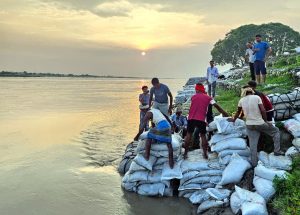 गंडक की तेज धारा से प्रभावित तिरहुत तटबंध पर तत्काल मरम्मती कार्य शुरू