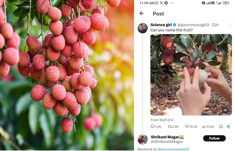 साइंस गर्ल नाम से चल रहे एक्स के पेज से लीची को दिखाते हुए 23 सेकेंड का एक वीडियो शेयर कर, सवाल किया गया कि क्या आप इस फल का नाम बता सकते है. जिसके बाद रिट्विट और और कमेंट की बाढ़ आ गयी. अंतरराष्ट्रीय स्तर पर भी लीची को लेकर लोग इतने उत्सुक है, कि बीते 24 घंटे से भी कम वक्त में 11.6 मिलियन लोग इस लीची के वीडियो को देख चुके है.