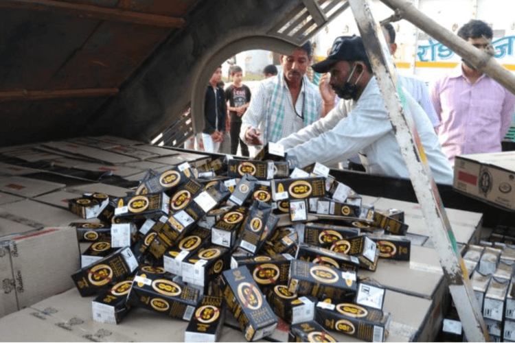 Muzaffarpur News: कांटी थाना की पुलिस को शराब तस्करी के खिलाफ चल रहे अभियान में बड़ी सफलता मिली है. पुलिस ने कंटेनर पर लदी पचास लाख रुपये से अधिक की शराब बरामद की है. छापेमारी के दौरान रात में अंधेरे का फायदा उठाते हुए धंधेबाज के साथ कंटेनर का चालक फरार होने में सफल हो गया. थानाध्यक्ष सुधाकर पांडे ने बताया कि 18 चक्का कंटेनर में दाना के अंदर छुपा के रखे गए 631 कार्टन शराब बरामद की गई है. जब्त की गई शराब की कीमत 50 लाख से अधिक बताई जा रही है.