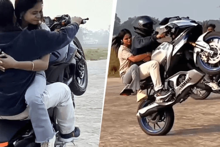 बता दें, बीते दिन मुजफ्फरपुर के पताही हवाई अड्डे से एक वीडियो सामने आया था, जिसमें एक युवक बाइक की टंकी पर युवती को बैठाकर स्टंटबाजी करता दिख रहा है. वीडियो में दिख रहा है कि युवक बाइक के अगले पहिये को उठाकर एक पहिये पर गाड़ी चला रहा है और युवती उसे दोनों हाथों से पकड़ कर बैठी है. इस वीडियो को सोशल मीडिया पर जमकर शेयर किया जा रहा है. साथ ही लोग तरह-तरह के कॉमेंट्स कर रहे हैं.