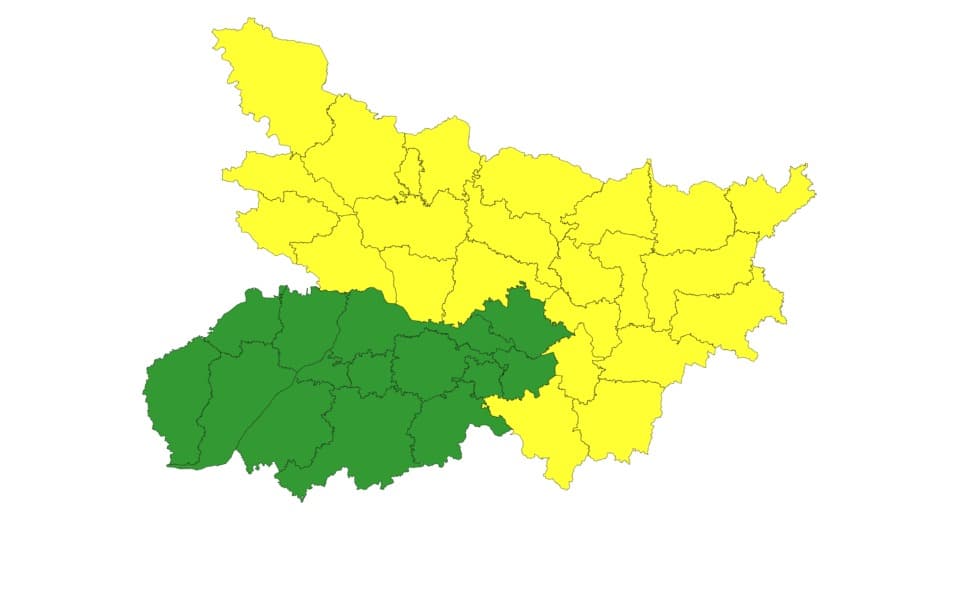 IMD की तरफ से शनिवार शाम को जारी रिपोर्ट के अनुसार, 13 अप्रैल (रविवार) को बिहार के पूर्णिया, कटिहार, भागलपुर, बांका, जमुई, मुंगेर, मधेपुरा, अररिया, खगड़िया, सहरसा, सुपौल, समस्तीपुर, दरभंगा, मधुबनी, वैशाली, शिवहर, सीतामढ़ी, मुजफ्फरपुर, सारण, सिवान, गोपालगंज, पूर्वी चंपारण, और पश्चिमी चंपारण जिले में बारिश होने की संभावना है. साथ ही इन जिलों में ठनका को लेकर भी चेतावनी दी गई है. बारिश और ठनका की स्थिति को देखते हुए इन जिलों में येलो अलर्ट जारी किया गया है.