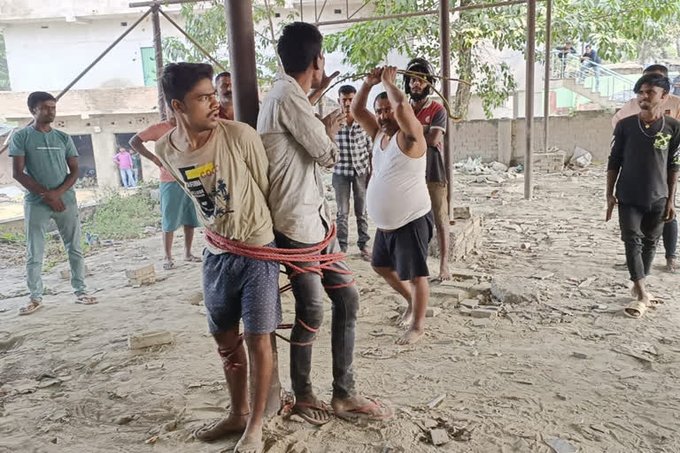 मुजफ्फरपुर में चोरों को खंभे से बांधकर भीड़ ने बर्बरता की हद पार की, चंद कदम पर था थाना.. देखें video 3
