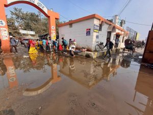 जंक्शन के गेट नंबर -4 पर जलजमाव से यात्रियों का पैदल चलना मुश्किल