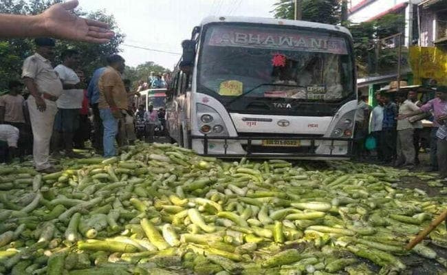 नालंदा : सब्जियों के भाव लागत से कम मिलने पर जिले के किसानों ने रविवार को सड़क पर कद्दू फेंक कर विरोध-प्रदर्शन किया.नाराज किसानों ने आज करीब 120 क्विंटल कद्दू सड़क पर फेंक दिया. जिस वजह से नालंदा-पटना मुख्य मार्ग पर जाम लग गया. नूरसराय प्रखंड विकास पदाधिकारी रंजीत कुमार और थानाध्यक्ष सुनील कुमार निर्झर ने किसानों को समझाया. सड़क पर फेंके गये कद्दू को काफी मशक्कत के बाद जेसीबी मशीन के जरिए हटाया गया. तब जा कर सडक जाम समाप्त हुआ. नूरसराय प्रखण्ड विकास पदाधिकारी ने बताया कि किसानों को लागत मूल्य नहीं मिलने से आक्रोशित थे और इस बाबत वरीय अधिकारी को सूचित कर दिया गया है. नूरसराय बाजार मे लगने वाली सब्जी मंडी में हर रोज की तरह आज भी उक्त प्रखंड के किसान अपनी फसल कद्दू बेचने पहुंचे थे. लेकिन लागत मूल्य भी किसी खरीदार द्वारा नहीं दिए जाने पर निराश और हताश किसानों ने आवेश में आकर सभी कद्दू को नालंदा-पटना मुख्य मार्ग पर फेंक दिये. जिससे उक्त मार्ग पर वाहनों का परिचालन करीब तीन घंटों तक बाधित रहा.