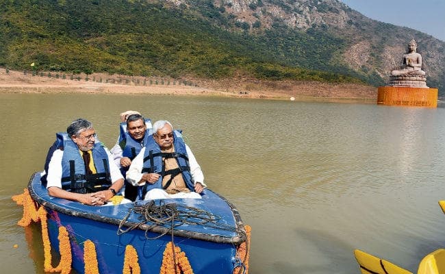 बिहारशरीफ/राजगीर : मुख्यमंत्री नीतीश कुमार ने रविवार को घोड़ा कटोरा झील में भगवान बुद्ध की 70 फुट ऊंची प्रतिमा का अनावरण किया. यह प्रदेश की तीसरी सबसे ऊंची बुद्ध की मूर्ति है. तीन देशों थाईलैंड, जापान और भूटान के बौद्ध भिक्षुओं के मंगलाचरण के बाद मुख्यमंत्री ने शिलापट का अनावरण किया और उपमुख्यमंत्री सुशील कुमार मोदी के साथ बैट्री चालित बोट में बैठ कर झील में स्थित भगवान बुद्ध की प्रतिमा की चारों ओर परिक्रमा की.