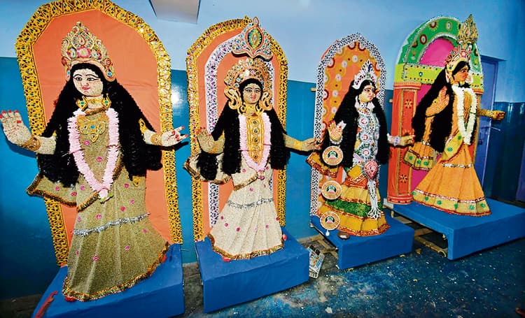 पटना. शहर में मौजूद मूर्तिकार भाइयों की जोड़ी ने इस साल भी नवरात्र में कुछ हट कर प्रतिमा तैयार की है. जीतेंद्र कुमार और उनके छोटे भाई चंदन कुमार ने मिल कर पांच तरह की भारत माता की प्रतिमाएं तैयार की हैं. इसमें उन दोनों ने बाजरा, ज्वार, गेहूं-मकई चिप्स (कॉर्नफ्लेक्स), मिक्स पापड़ और लिपस्टिक की प्रतिमा तैयार की है.