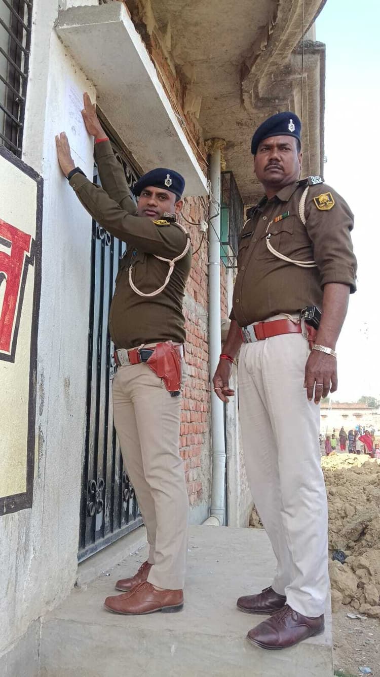 दहेज हत्या के मामले में फरार चल रहे अभियुक्त के घर चिपकाया इश्तेहार