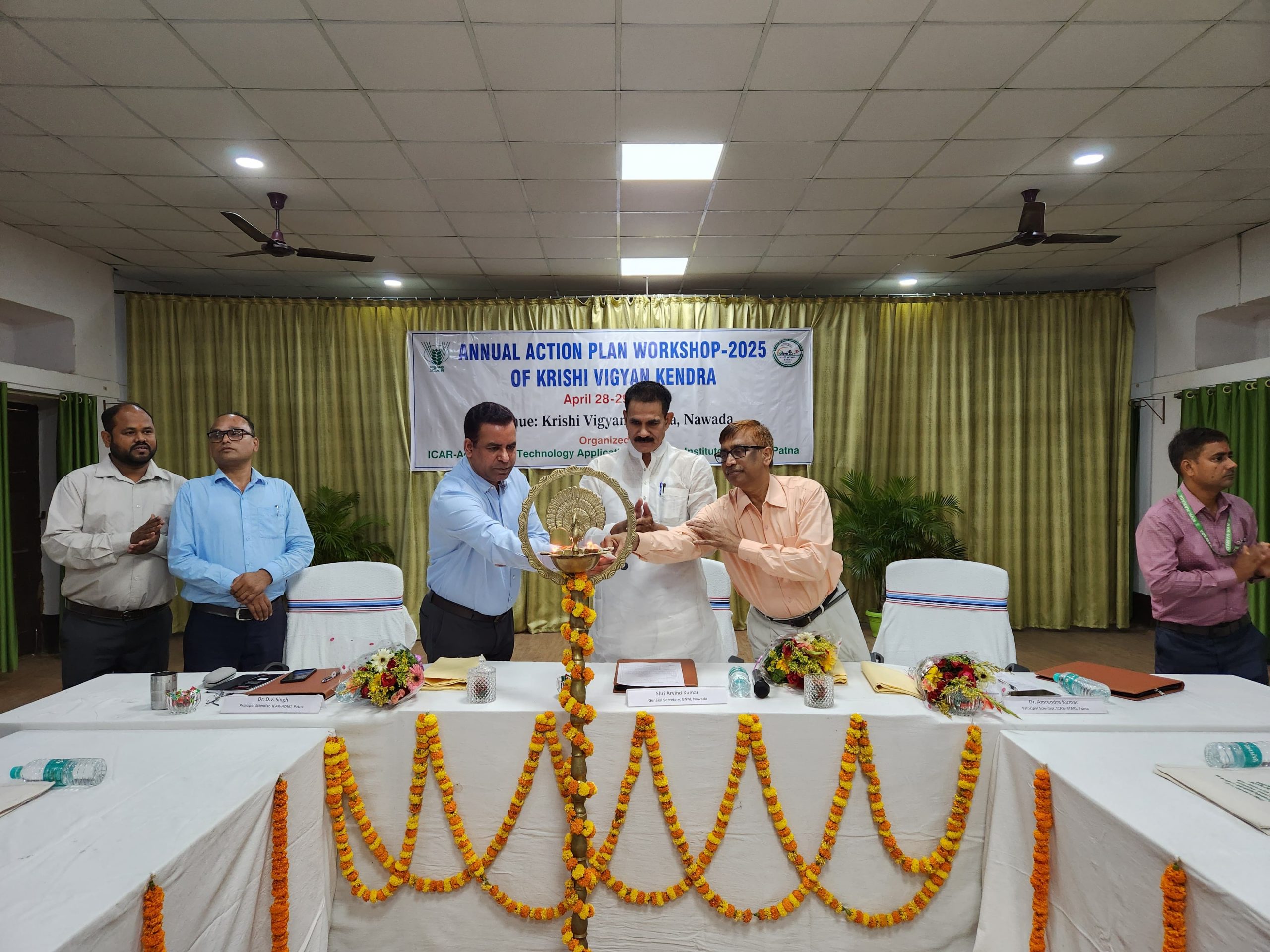 कौआकोल. प्रखंड के जेपी आश्रम सोखोदेवरा स्थित राजेंद्र भवन में सोमवार को भारतीय कृषि अनुसंधान परिषद अटारी, पटना के बैनर तले वार्षिक कार्य योजना को लेकर दो दिवसीय कार्यशाला आयोजित की गयी. इसका उद्घाटन ग्राम निर्माण मंडल के प्रधानमंत्री अरविंद कुमार, भारतीय कृषि अनुसंधान परिषद अटारी, पटना के प्रमुख वैज्ञानिक डॉ अमरेंद्र कुमार व डॉ डीबी सिंह ने दीप प्रज्वलित कर किया है. कार्यशाला में बिहार कृषि विश्वविद्यालय सबौर, भागलपुर अंतर्गत सभी 22 कृषि विज्ञान केंद्रों के वरीय वैज्ञानिक सह प्रधान शामिल हुए हैं. विभिन्न प्रांतों से आये कृषि वैज्ञानिकों ने वर्ष 2025-26 के लिए वार्षिक कार्य योजनाओं को लेकर आवश्यक जानकारी एक-दूसरे से साझा की. वहीं, भारत सरकार के कृषि व किसान कल्याण मंत्रालय के कैबिनेट मंत्री शिवराज सिंह चौहान ने भी वीडियो कॉन्फ्रेंसिंग के माध्यम से कृषि वैज्ञानिकों को संबोधित किया. वार्षिक कार्य योजना के सफल संचालन के लिए उन्हें शुभकामनाएं देते हुए मार्गदर्शन किया. इस दरम्यान अटारी, पटना के निदेशक डॉ अंजनी कुमार ने भी बिहार से जुड़े सभी केवीके की ओर से कार्य का प्रस्तुतिकरण कृषि मंत्री के समक्ष रखा, वैज्ञानिकों ने कहा कि आने वाले दिनों में यह वार्षिक कार्ययोजना किसानों व पशुपालकों के लिए वरदान साबित होगा. इसके पूर्व कृषि विज्ञान केंद्र के वरीय वैज्ञानिक सह प्रधान डॉ जयवंत कुमार सिंह ने सभी अतिथियों व वैज्ञानिकों का स्वागत किया गया. इस मौके पर केवीके के वैज्ञानिक डॉ अंगद कुमार, रौशन कुमार समेत अन्य लोग मौजूद थे.