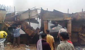 भीषण आग से मोहल्ले में अफरा-तफरी का माहौल