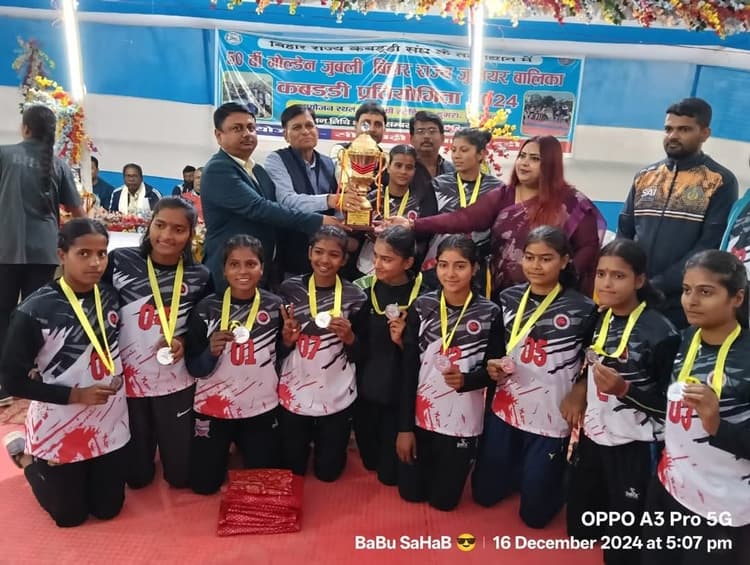 नवादा कार्यालय. 50वीं गोल्डन जुबली बिहार राज्य जूनियर बालिका कबड्डी प्रतियोगिता 2024 में नवादा जिले की बालिका टीम सभी टीमों को हराते उपविजेता बन गयी. प्रतियोगिता में जीत का श्रेय दिलाने वाले खिलाड़ी कप्तान निक्की यादव, उप कप्तान इंदु कुमारी, ललिता कुमारी, दिव्यांशी, सलोनी रंजन, अल्पना रंजन, प्रीति कुमारी, राखी सिंह, खुशी कुमारी, नीतू कुमारी का शानदार प्रर्दशन रहा. कोच के रूप में राष्ट्रीय खिलाड़ी अविनाश कुमार व टीम मैनेजर अंशु कुमार के नेतृत्व में यह सफलता हासिल हुई है. शिक्षक सम्मान से सम्मानित शारीरिक शिक्षक सह राष्ट्रीय कबड्डी खिलाड़ी संतोष कुमार वर्मा ने बताया कि टीम के खिलाड़ी इंदु कुमारी को वेस्ट रेडर का खिताब मिला. सभी खिलाड़ी नियमित प्रैक्टिस करते हैं और पिछले कई प्रतियोगिता सब जूनियर ग्रुप जूनियर ग्रुप व सीनियर ग्रुप में नवादा जिले को पदक दिला चुके हैं. वहीं, टीम के कोच अविनाश कुमार की मेहनत व मार्गदर्शन लगातार मिलते रहने के कारण नवादा जिला कबड्डी खेल में बेहतर उपलब्धि हासिल कर रहा है. टीम की बेस्ट खिलाड़ी इंदू कुमारी राष्ट्रीय प्रतियोगिता में भी पदक दिला चुकी है. इन सभी खिलाड़ियों के इस जीत पर नवादा जिले के सभी सीनियर व जूनियर खिलाड़ियों ने बधाई व शुभकामनाएं दी. प्रतियोगिता के आधार पर राष्ट्रीय जूनियर कबड्डी चैंपियनशिप में भाग लेने के लिए बिहार टीम का गठन किया जायेगा. इसमें नवादा जिले के खिलाड़ियों का भी चयन किया गया है. नाम की घोषणा बाद में की जायेगी. इन सभी खिलाड़ियों के इस जीत पर जिला खेल पदाधिकारी नवीन कुमार पांडेय, दीपक कुमार, रजनीश कुमार, कृष्णकांत कुमार झुन्नु, संजीव कुमार, चिंटू कुमार, नुनू कुमार आदि लोगों ने सभी खिलाड़ियों को बधाई दी.