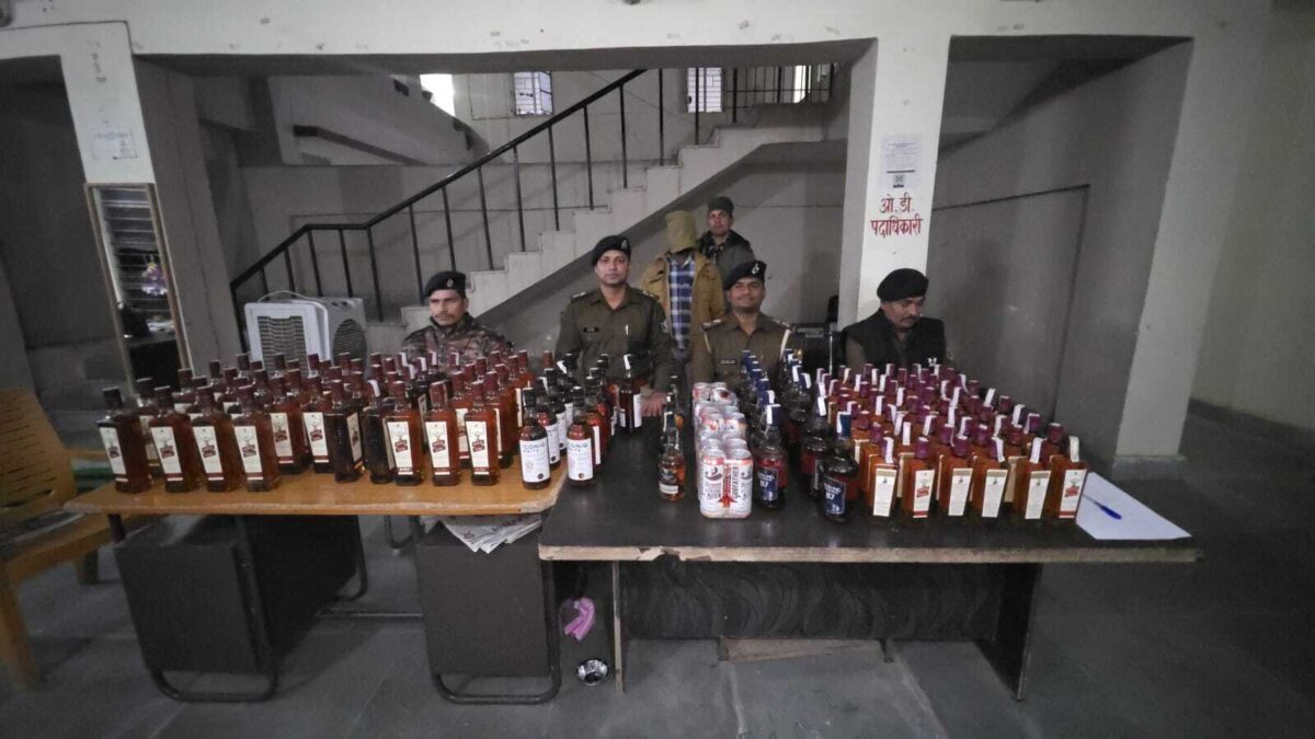 87 लीटर अंग्रेजी शराब बरामद प्रतिनिधि, अकबरपुर. नेमदारगंज थाना क्षेत्र में पुलिस ने शराब के साथ एक धंधेबाज को गिरफ्तार किया है. यह कार्रवाई बीती रात गुरुवार को हुई है. पुलिस को गुप्त सूचना मिली थी कि राजापुर इंदौल गांव में एक दुकान से शराब की बिक्री की जा रही है. सूचना के आधार पर नेमदारगंज थाना की पुलिस ने छापेमारी की. इस छापेमारी के दौरान राजापुर इंदौल गांव निवासी उपेंद्र कुमार की दुकान से अंग्रेजी शराब बरामद हुई. पुलिस ने मौके से रॉयल स्टैग 750 एमएल की 47 बोतल, रॉयल स्टैग 375 एमएल की 59 बोतल, स्टर्लिंग रिजर्व बी7 (750 एमएल) की 15 बोतल, आइकॉनिक व्हाइट (750 एमएल) की 11 बोतल, ब्लेंडर्स प्राइड 350 एमएल की 6 बोतल और बियर की 15 बोतल बरामद हुई. इस प्रकार कुल 86.625 लीटर अवैध शराब जब्त की गयी है. पुलिस ने मौके से आरोपित उपेंद्र कुमार को गिरफ्तार कर लिया है. इस संबंध में नेमदारगंज थाना कांड संख्या 459/25 के तहत बिहार मद्य निषेध एवं उत्पाद अधिनियम के अंतर्गत मामला दर्ज किया गया है. गिरफ्तार अभियुक्त को आवश्यक कानूनी प्रक्रिया पूरी करने के बाद जेल भेज दिया गया है. नेमदरगंज थाना के सब इंस्पेक्टर रंजीत कुमार ने बताया कि शराबबंदी कानून का उल्लंघन करने वालों के विरुद्ध आगे भी सख्त कार्रवाई जारी रहेगी.
