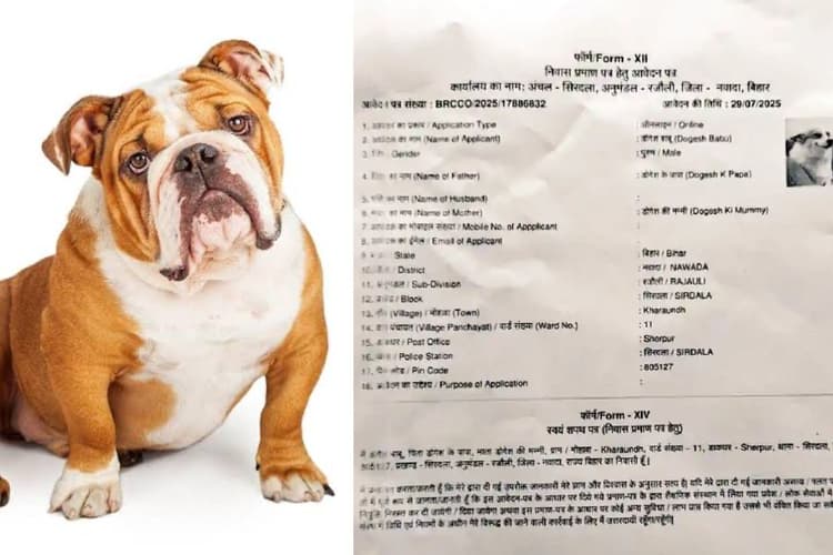 Bihar News: बिहार के नवादा जिले के सिरदला अंचल कार्यालय से एक बार फिर सरकारी दस्तावेजों की गंभीरता को मज़ाक बनाने की कोशिश सामने आई है. इस बार मामला और अजीब है ‘डॉगेश बाबू’ नामक कुत्ते के नाम से ऑनलाइन निवास प्रमाण पत्र के लिए आवेदन दर्ज किया गया है. और हैरानी की बात यह है कि आवेदन के साथ पालतू कुत्ते की असली तस्वीर भी अपलोड की गई है.