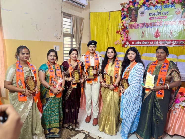 नवादा न्यूज : विहिप व बजरंगदल ने रक्तवीरों, समाजसेवियों व महिलाओं को किया सम्मानित