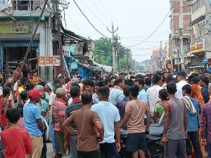 वारिसलीगंज थाने के पास गुस्साये लोगों ने जाम की सड़क